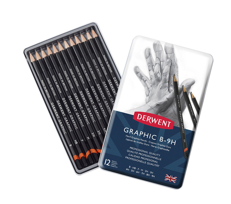 Derwent Graphic Pencil Tin of 12 Hard Graphite Pencils